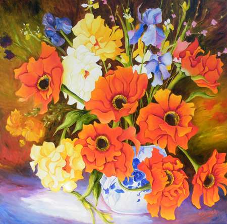 Son style figuratif, à la limite de l'impressionnisme, s'affirme de plus en plus à mesure qu'elle découvre et s'inspire des paysages des Cantons de l'Est.  Son sujet préféré reste sans doute les fleurs, dans les champs, le jardin, en vase ou en pot.  Elles lui permettent une grande liberté de création, autant dans la diversité de leurs formes que la variété de leurs coloris.