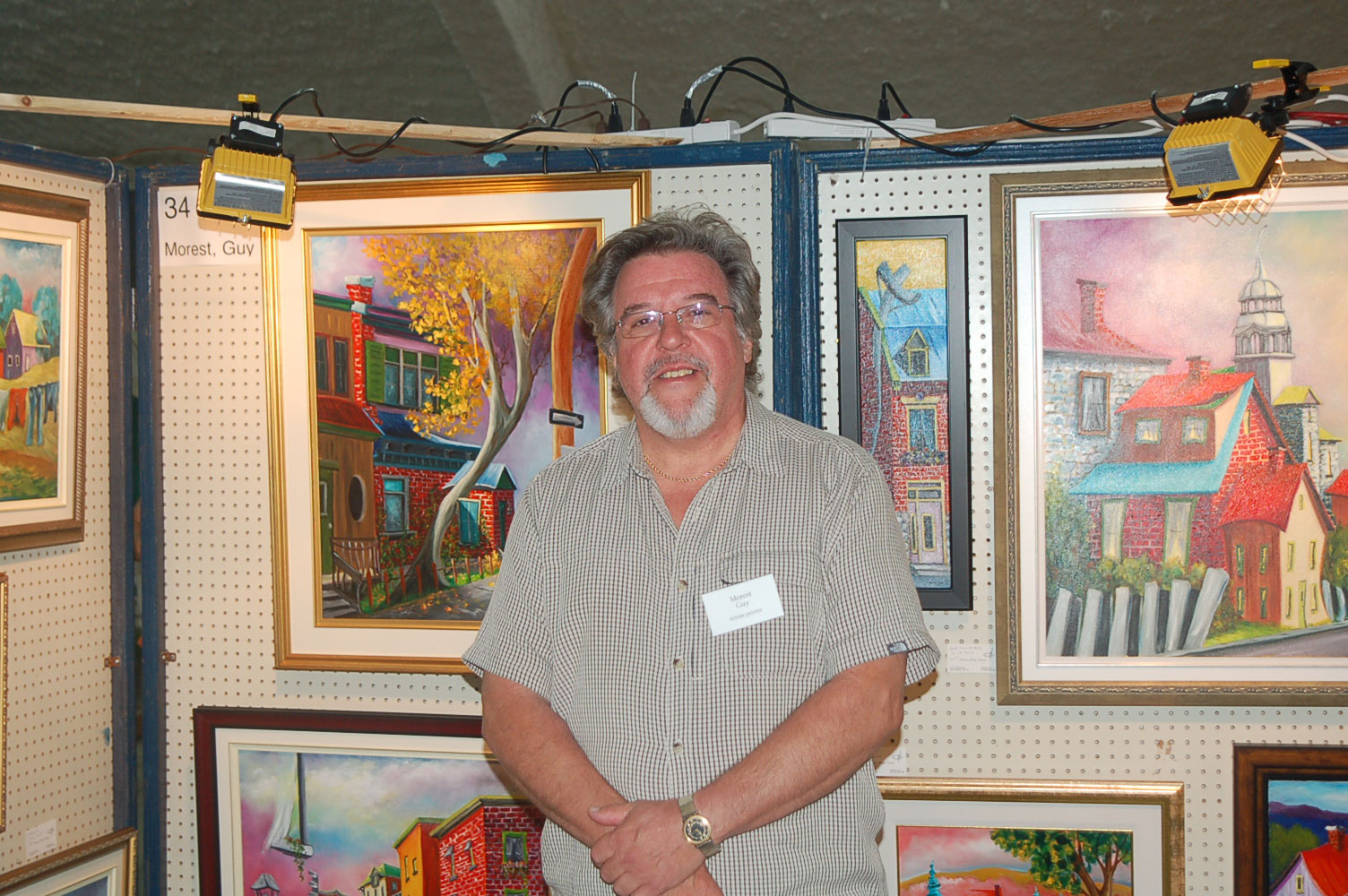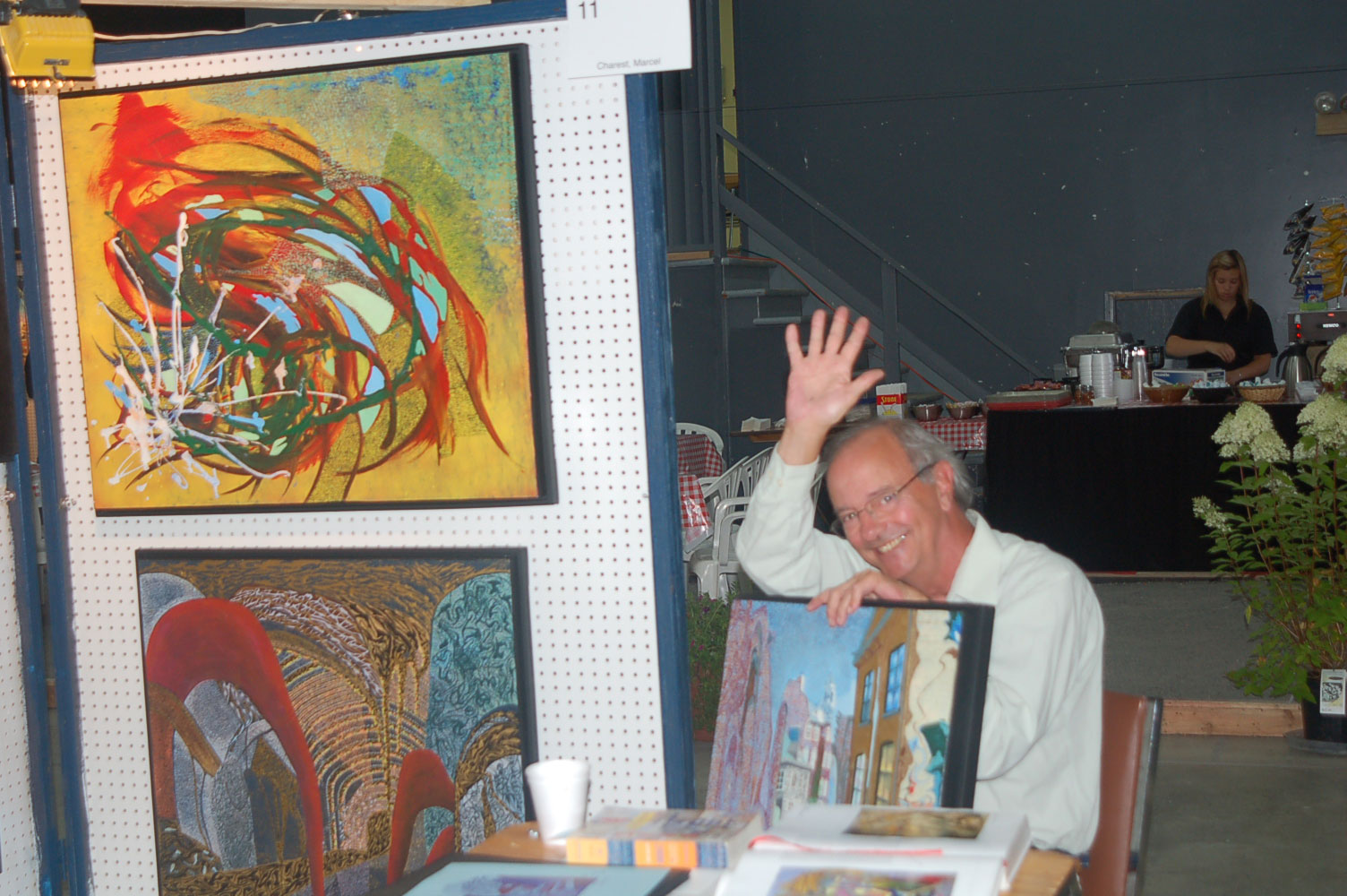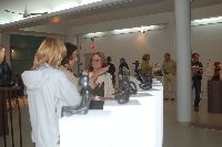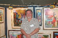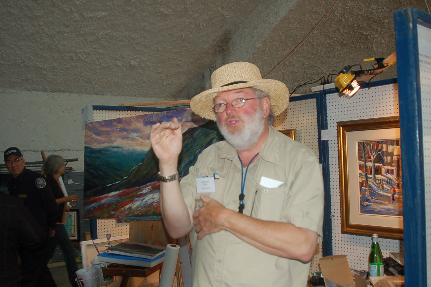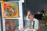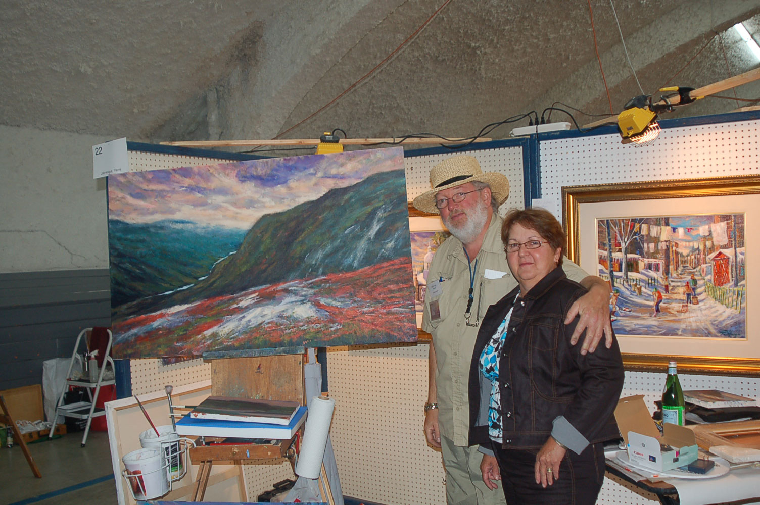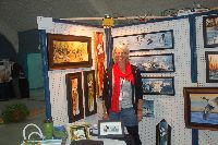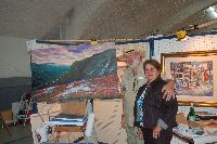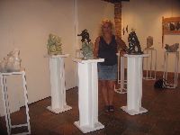 Description: Tout peut arriver à un président d'honneur de symposium...  M. Pierre Durocher, président d'honneur de La Farandole des arts visuels de Sainte-Marguerite du Lac Masson, relève un défi .... aquarellé! Une partie de pur plaisir a été proposée à M. Pierre Durocher, Directeur général de la Caisse populaire des Pays-d'en-Haut et président de la Farandole des Arts de Ste-Marguerite-du-lac-Masson qui a eu lieu les 19, 20, 21, 22 août 2010 . M. Durocher a créé sa première aquarelle en direct au symposium. On peut voir la complicité qui régnait entre M. Durocher qui s'est prêté au jeu avec Diane Forest, maître en beaux-arts, aibaq et artiste de l'Année 2006. Quand on dit que le rire est roi... c'était le cas. Madame la mairesse, Linda Fortier qui assistait à la prestation n'a pas pu contenir, elle non plus, son rire et manifester son plaisir. Charles Carson, maître en beaux-arts aibaq et Artiste de l'Année 2009, s'est révélé au public en peinture et en sculpture, cette fois. C'est au Bistro à Champlain que l'artiste accueillait les visiteurs. Ayant achevé sa sculpture à une heure tardive précédant l'ouverture de l'événement, c'est sous un feu déroulant de visiteurs que ce sont déroulés les 4 jours du symposiums.  «Je n'ai pas vu le temps passer, j'ai parlé durant quatre jours, je suis mort de fatigue». L'artiste a rencontré des centaines de visiteurs et il est enchanté de cette expérience. «C'est vraiment agréable d'être apprécié dans notre région, voir les gens d'ici apprécier mon travail, ça fait chaud au coeur.» Un gros merci à Madame Monique Nadeau et Monsieur Champlain Charest du «Bistro à Champlain» pour leur hospitalité légendaire. Un grand nombre d'artistes-membres de l'Académie I nternationale des Beaux-Arts du Québec ont été sélectionnés pour l'événement. Je n'ai pu malheureusement rencontrer tous les artistes, mais, par contre j'ai eu le plaisir de rencontrer la volub ile, enthousiaste et talentueuse Geneviève Forest qui m'a expliqué brièvement... mais de long en large, tous les projets qui lui tiennent à coeur et qui feront l'objet prochainement dune entrevue de fond. Geneviève Forest que vous voyez ici en compagnie du sculpteur cubain Wilfredo Fernández González, quel enthousiasme, une artiste vraiment rafraichissante remplie de magnifiques projets : de la cire perdue au bronze, de l'intégration de ses sculptures dans une installation mobile de Wilfredo Fernández González, de la description de son magnifique atelier (anciennement le théâtre Sans-Fils) où furent créées les marionnettes géantes, rappelons que Geneviève a remporté le Prix Sculptura du dernier gala ACADEMIA XXI. L'artiste laisse ses mains caresser la cire, la presser, l'étirer, la sculpter... pour ensuite s'inspirer du résultat obtenu pour former et habiter une nouvelle oeuvre toute aussi intense les unes que les autres. Samedi, lors de ma visite, je n'ai malheureusement pu rencontrer Carole Desgagné et Lerou. Je vous présente toutefois, et avec grand plaisir, quelques photos de ces deux sculpteures et de quelques-unes de leurs oeuvres. Une sculpture de Guy Pierre, académicien aibaq, «plus grand que nature» un musicien, un jazzman sculpté à même du bois de noyer, accueillait les visiteurs au pied du grand escalier qui nous amenait au salon des sculpteurs. L'oeuvre de Guy Pierre, ainsi regroupée, est vraiment très impressionna nte et l'artiste est tout aussi impressionnant dans sa grande simplicité et sa gentillesse auprès des visiteurs. Mais voyez par vous même, on ne peut éviter le caractère joyeux et cabotin de l'artiste qui sait aussi nous livrer un côté très poétiques de sa personnalité dans plusieurs oeuvres tout simplement féériques.  J'ai eu une assez longue conversation avec le sculpteur Daniel P. Simard qui m'a expliqué le sentiment de plénitude et de certitude qu'il éprouve en sculptant. «Lorsque je sculpte tout est simple, tout coule de source» Daniel crée des oeuvres d'une grande originalité bien équilibrée et supportée par sa méthode de dessin si caractéristique et personnelle, il sculpte des bronzes affichant la ligne DPS, une véritable signature artistique. Tout était prêt pour l'entrevue pour Daniel P. Simard, c'est partie remise. Le sculpteur fait parfois place au peintre, ce dernier s'interroge, scrute, réfléchit. Chez les artistes-peintres... Carole Bonneau, nous présentait ses nouvelles oeuvres à l'acrylique, toujours aussi enjouée et sympathique l'artiste se retrouve sur la liste des entrevues à venir du ArtAcademie.tv, car malgré notre volonté, il nous a été impossible de réaliser la moindre entrevue faute d'endroits propices. L'emplacement proposé par la présidente étant inadéquat nous avons donc quitté immédiatement le site, avec armes et bagages (éclairages, caméras, portable, moniteur, etc.) à l'ouverture, le jeudi. Malgré notre déception d'être dans l'impossibilité de réaliser une série d'entrevues filmées avec les artistes. Le samedi, après avoir replacé les équipements à l'Académie, j'ai fait ... bon coeur contre mauvaise fortune et je suis retournée au symposium toute la journée, munie cette fois de mon Nikon. J'ai récolté quelques propos et témoignages de plusieurs membres de l'Académie. C'est une Vickie Brisson-Béla nger très fière qui m'a montré les certificats et mention d'honneur qui m'ont permis de lui décerner un «tour du chapeau artistique» récemment dans une nouvelle du marché de l'art. Marcel Charest a reçu Madame Suzanne Lapointe, comédienne et animatrice bien connue. Marcel Charest a été très touché de la générosité de Madame Lap ointe qui a vraiment apprécié ses oeuvres. Marcel a participé à la dernièe biennale de Florence. Il faut voir les oeuvres originales de l'artiste pour en comprendre la complexité, l'utilisation du pointilliste, l'élégance des formes et la sonorité de ses