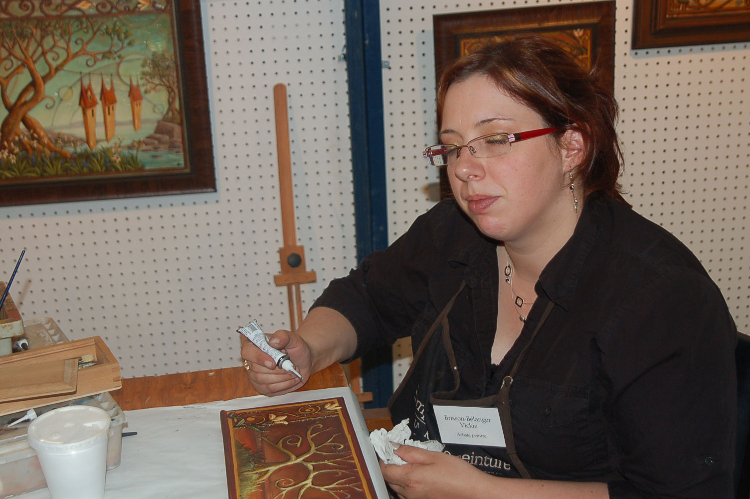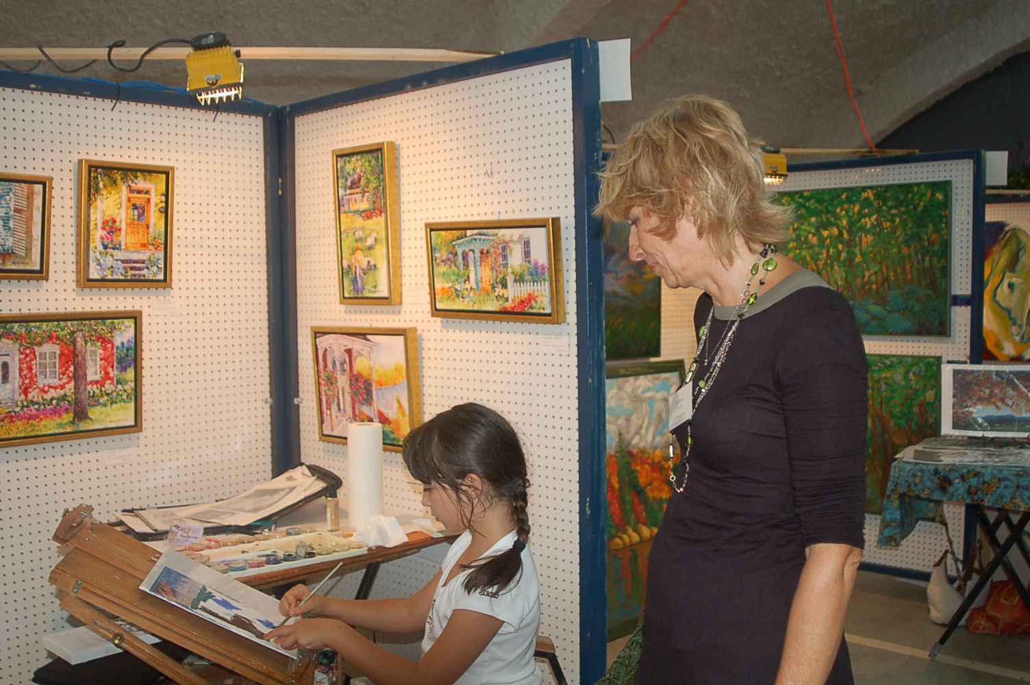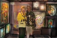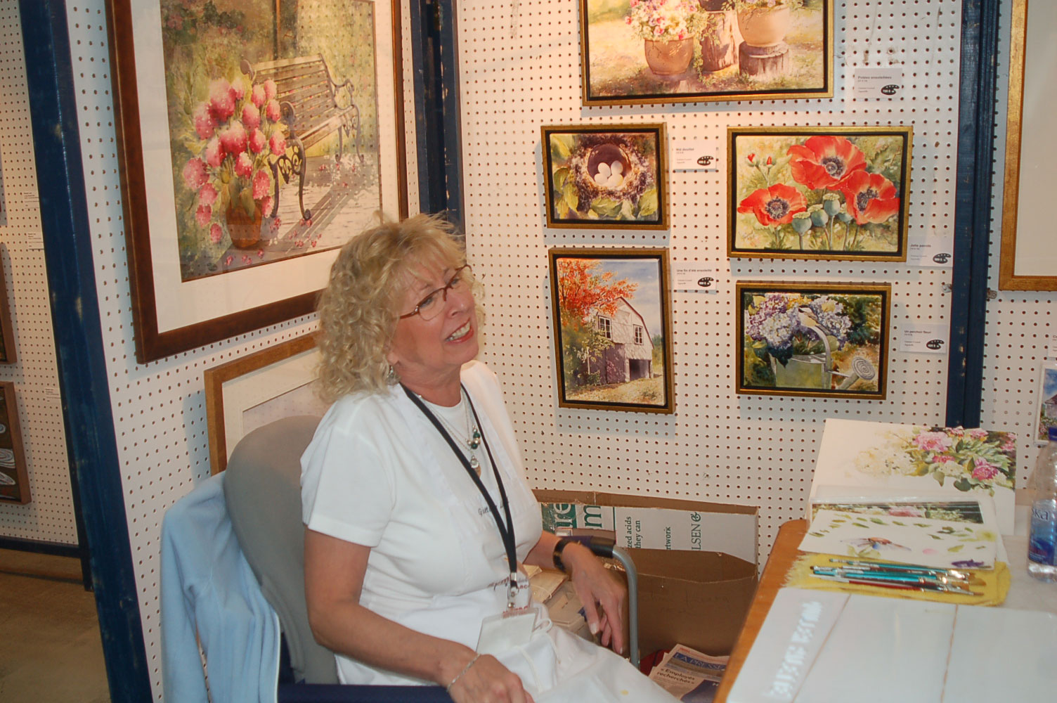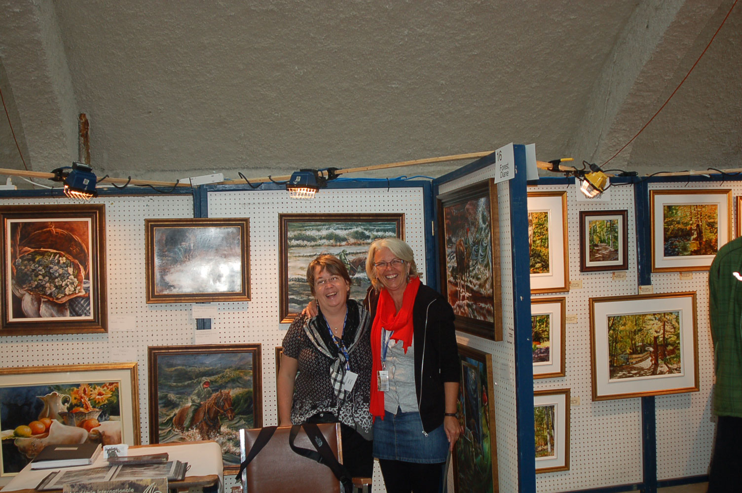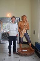 Description: Tout peut arriver à un président d'honneur de symposium...  M. Pierre Durocher, président d'honneur de La Farandole des arts visuels de Sainte-Marguerite du Lac Masson, relève un défi .... aquarellé! Une partie de pur plaisir a été proposée à M. Pierre Durocher, Directeur général de la Caisse populaire des Pays-d'en-Haut et président de la Farandole des Arts de Ste-Marguerite-du-lac-Masson qui a eu lieu les 19, 20, 21, 22 août 2010 . M. Durocher a créé sa première aquarelle en direct au symposium. On peut voir la complicité qui régnait entre M. Durocher qui s'est prêté au jeu avec Diane Forest, maître en beaux-arts, aibaq et artiste de l'Année 2006. Quand on dit que le rire est roi... c'était le cas. Madame la mairesse, Linda Fortier qui assistait à la prestation n'a pas pu contenir, elle non plus, son rire et manifester son plaisir. Charles Carson, maître en beaux-arts aibaq et Artiste de l'Année 2009, s'est révélé au public en peinture et en sculpture, cette fois. C'est au Bistro à Champlain que l'artiste accueillait les visiteurs. Ayant achevé sa sculpture à une heure tardive précédant l'ouverture de l'événement, c'est sous un feu déroulant de visiteurs que ce sont déroulés les 4 jours du symposiums.  «Je n'ai pas vu le temps passer, j'ai parlé durant quatre jours, je suis mort de fatigue». L'artiste a rencontré des centaines de visiteurs et il est enchanté de cette expérience. «C'est vraiment agréable d'être apprécié dans notre région, voir les gens d'ici apprécier mon travail, ça fait chaud au coeur.» Un gros merci à Madame Monique Nadeau et Monsieur Champlain Charest du «Bistro à Champlain» pour leur hospitalité légendaire. Un grand nombre d'artistes-membres de l'Académie I nternationale des Beaux-Arts du Québec ont été sélectionnés pour l'événement. Je n'ai pu malheureusement rencontrer tous les artistes, mais, par contre j'ai eu le plaisir de rencontrer la volub ile, enthousiaste et talentueuse Geneviève Forest qui m'a expliqué brièvement... mais de long en large, tous les projets qui lui tiennent à coeur et qui feront l'objet prochainement dune entrevue de fond. Geneviève Forest que vous voyez ici en compagnie du sculpteur cubain Wilfredo Fernández González, quel enthousiasme, une artiste vraiment rafraichissante remplie de magnifiques projets : de la cire perdue au bronze, de l'intégration de ses sculptures dans une installation mobile de Wilfredo Fernández González, de la description de son magnifique atelier (anciennement le théâtre Sans-Fils) où furent créées les marionnettes géantes, rappelons que Geneviève a remporté le Prix Sculptura du dernier gala ACADEMIA XXI. L'artiste laisse ses mains caresser la cire, la presser, l'étirer, la sculpter... pour ensuite s'inspirer du résultat obtenu pour former et habiter une nouvelle oeuvre toute aussi intense les unes que les autres. Samedi, lors de ma visite, je n'ai malheureusement pu rencontrer Carole Desgagné et Lerou. Je vous présente toutefois, et avec grand plaisir, quelques photos de ces deux sculpteures et de quelques-unes de leurs oeuvres. Une sculpture de Guy Pierre, académicien aibaq, «plus grand que nature» un musicien, un jazzman sculpté à même du bois de noyer, accueillait les visiteurs au pied du grand escalier qui nous amenait au salon des sculpteurs. L'oeuvre de Guy Pierre, ainsi regroupée, est vraiment très impressionna nte et l'artiste est tout aussi impressionnant dans sa grande simplicité et sa gentillesse auprès des visiteurs. Mais voyez par vous même, on ne peut éviter le caractère joyeux et cabotin de l'artiste qui sait aussi nous livrer un côté très poétiques de sa personnalité dans plusieurs oeuvres tout simplement féériques.  J'ai eu une assez longue conversation avec le sculpteur Daniel P. Simard qui m'a expliqué le sentiment de plénitude et de certitude qu'il éprouve en sculptant. «Lorsque je sculpte tout est simple, tout coule de source» Daniel crée des oeuvres d'une grande originalité bien équilibrée et supportée par sa méthode de dessin si caractéristique et personnelle, il sculpte des bronzes affichant la ligne DPS, une véritable signature artistique. Tout était prêt pour l'entrevue pour Daniel P. Simard, c'est partie remise. Le sculpteur fait parfois place au peintre, ce dernier s'interroge, scrute, réfléchit. Chez les artistes-peintres... Carole Bonneau, nous présentait ses nouvelles oeuvres à l'acrylique, toujours aussi enjouée et sympathique l'artiste se retrouve sur la liste des entrevues à venir du ArtAcademie.tv, car malgré notre volonté, il nous a été impossible de réaliser la moindre entrevue faute d'endroits propices. L'emplacement proposé par la présidente étant inadéquat nous avons donc quitté immédiatement le site, avec armes et bagages (éclairages, caméras, portable, moniteur, etc.) à l'ouverture, le jeudi. Malgré notre déception d'être dans l'impossibilité de réaliser une série d'entrevues filmées avec les artistes. Le samedi, après avoir replacé les équipements à l'Académie, j'ai fait ... bon coeur contre mauvaise fortune et je suis retournée au symposium toute la journée, munie cette fois de mon Nikon. J'ai récolté quelques propos et témoignages de plusieurs membres de l'Académie. C'est une Vickie Brisson-Béla nger très fière qui m'a montré les certificats et mention d'honneur qui m'ont permis de lui décerner un «tour du chapeau artistique» récemment dans une nouvelle du marché de l'art. Marcel Charest a reçu Madame Suzanne Lapointe, comédienne et animatrice bien connue. Marcel Charest a été très touché de la générosité de Madame Lap ointe qui a vraiment apprécié ses oeuvres. Marcel a participé à la dernièe biennale de Florence. Il faut voir les oeuvres originales de l'artiste pour en comprendre la complexité, l'utilisation du pointilliste, l'élégance des formes et la sonorité de ses