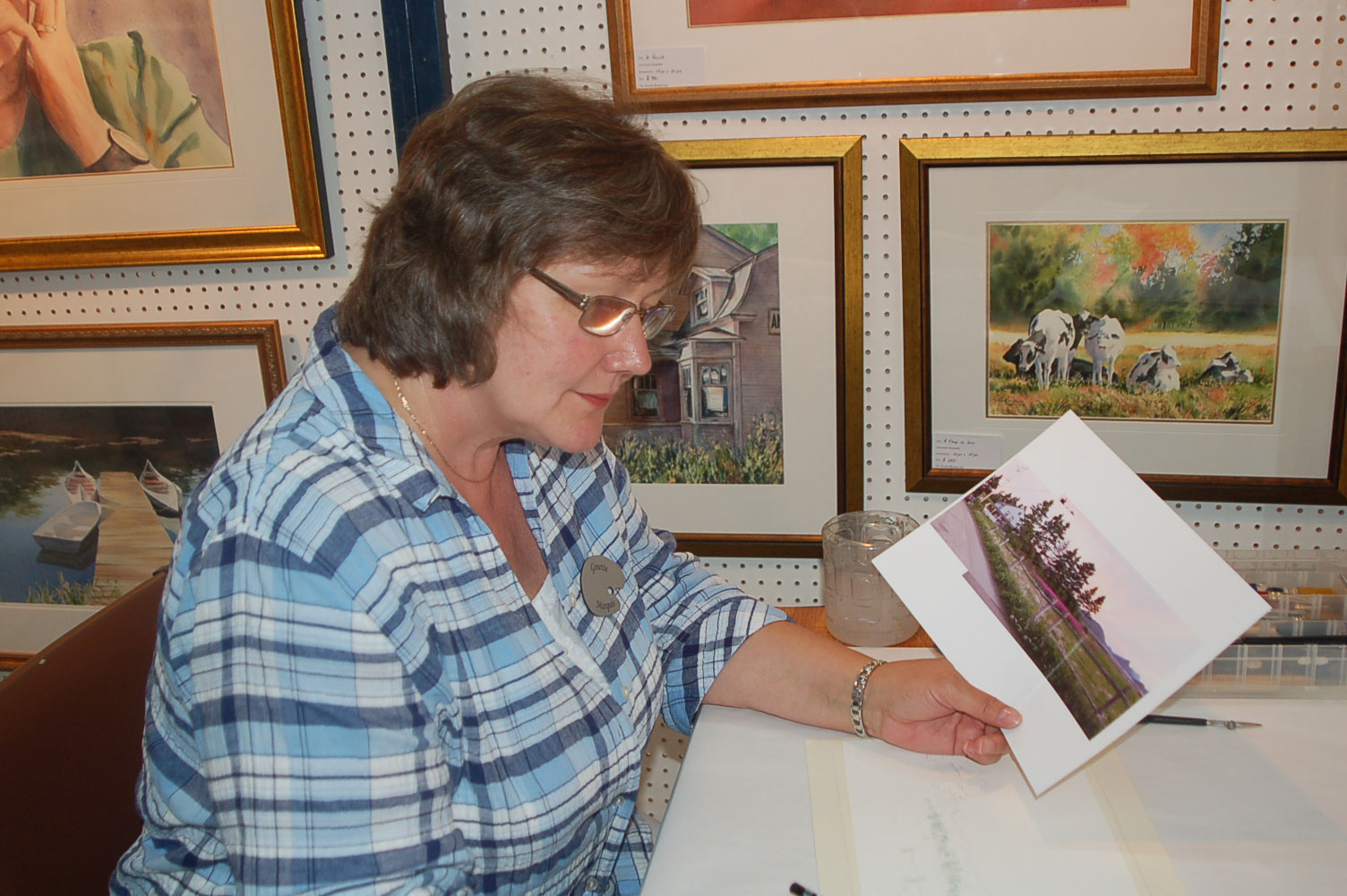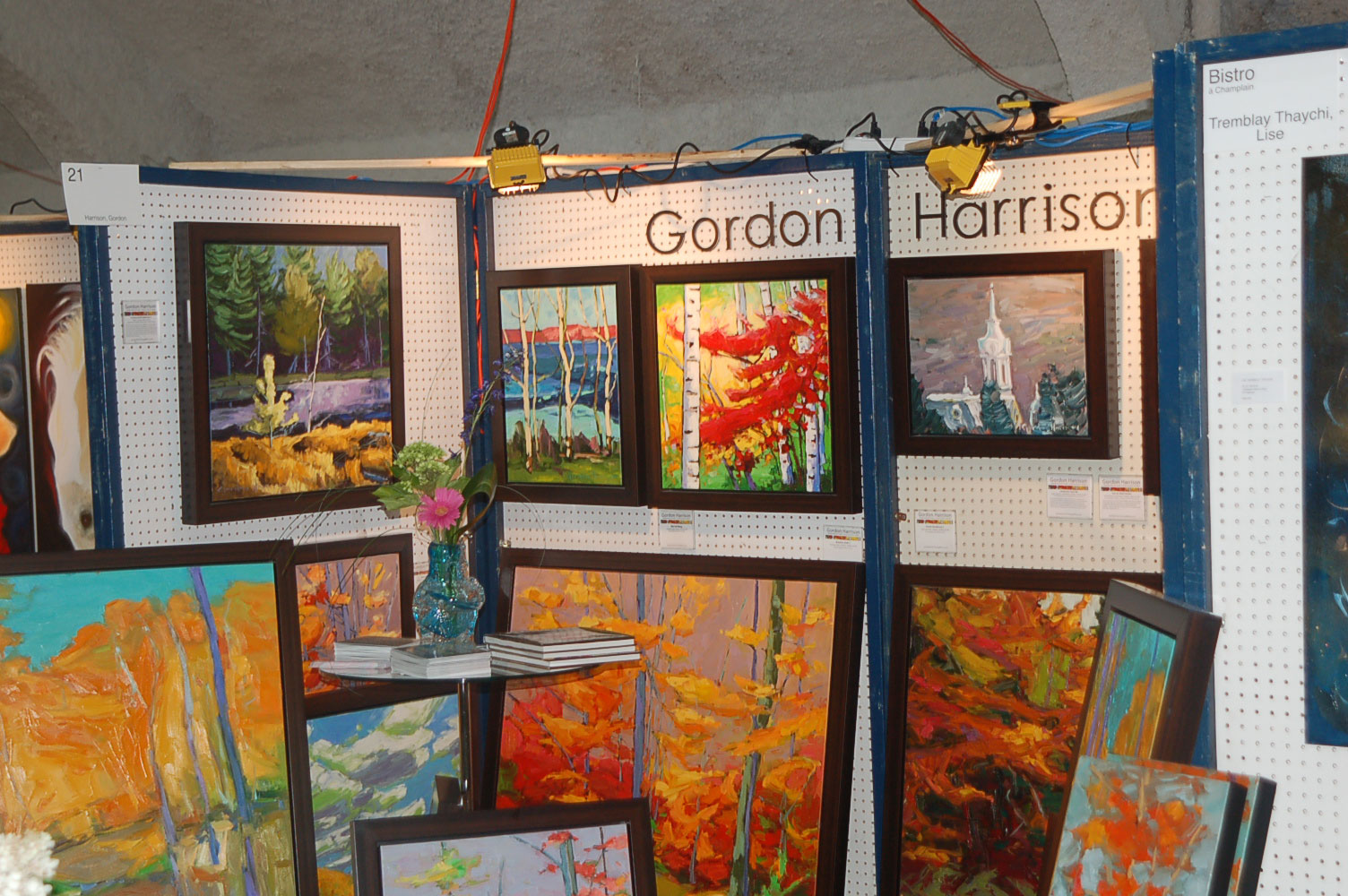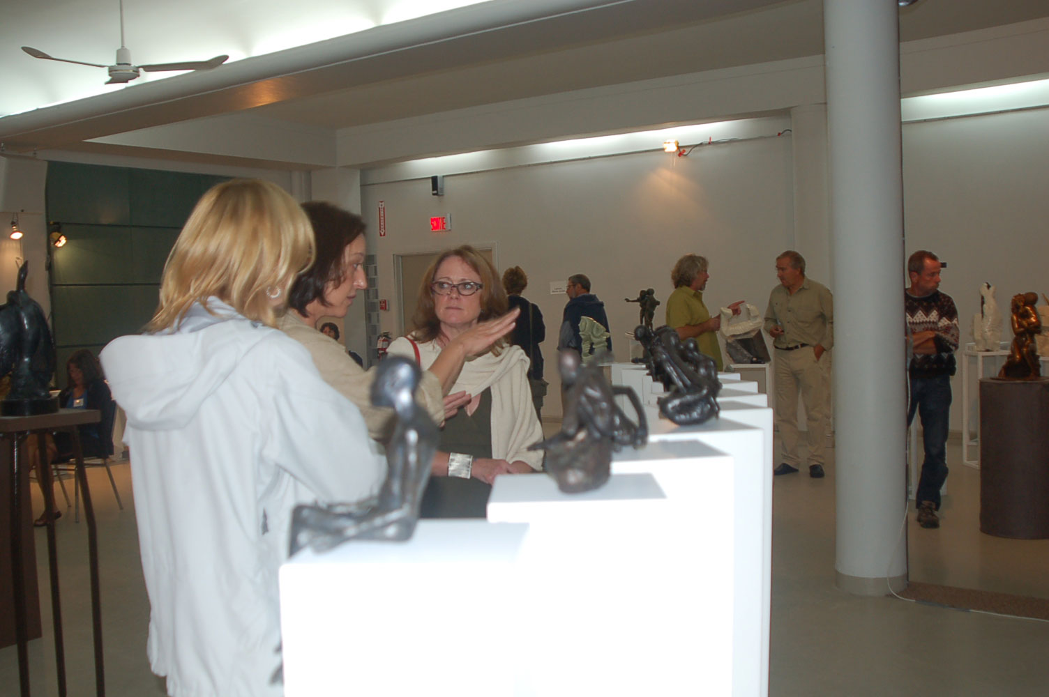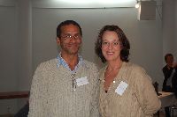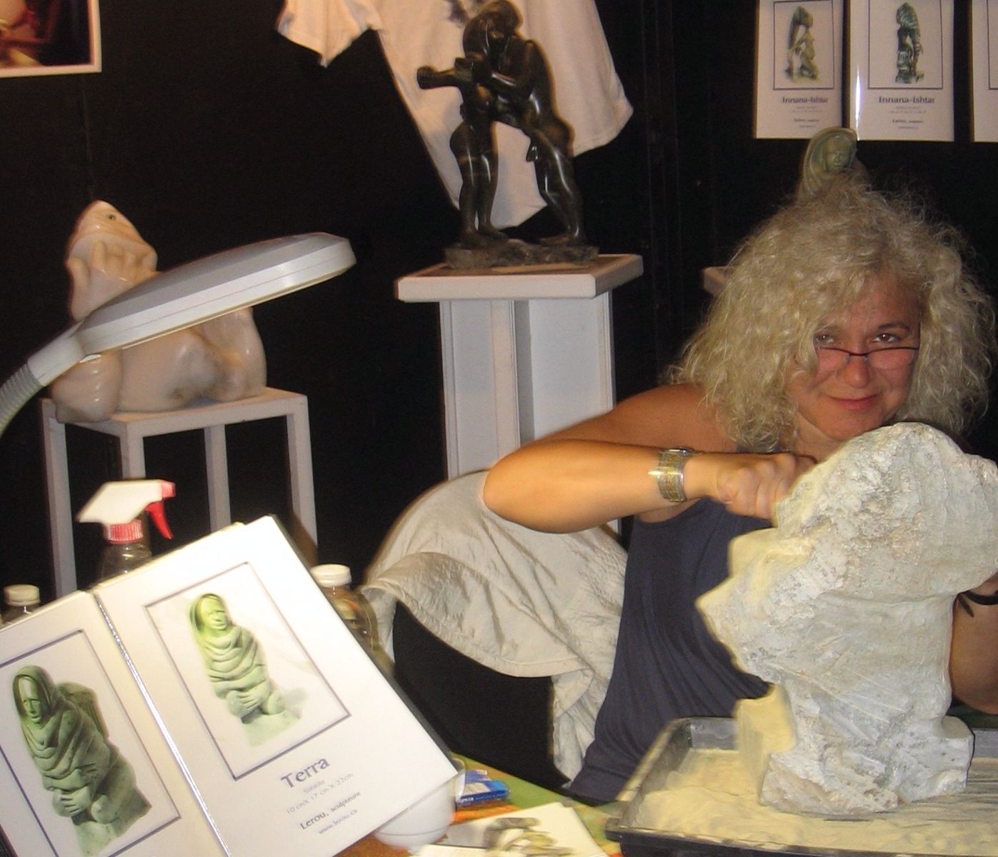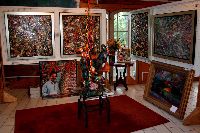 Description: Tout peut arriver à un président d'honneur de symposium...  M. Pierre Durocher, président d'honneur de La Farandole des arts visuels de Sainte-Marguerite du Lac Masson, relève un défi .... aquarellé! Une partie de pur plaisir a été proposée à M. Pierre Durocher, Directeur général de la Caisse populaire des Pays-d'en-Haut et président de la Farandole des Arts de Ste-Marguerite-du-lac-Masson qui a eu lieu les 19, 20, 21, 22 août 2010 . M. Durocher a créé sa première aquarelle en direct au symposium. On peut voir la complicité qui régnait entre M. Durocher qui s'est prêté au jeu avec Diane Forest, maître en beaux-arts, aibaq et artiste de l'Année 2006. Quand on dit que le rire est roi... c'était le cas. Madame la mairesse, Linda Fortier qui assistait à la prestation n'a pas pu contenir, elle non plus, son rire et manifester son plaisir. Charles Carson, maître en beaux-arts aibaq et Artiste de l'Année 2009, s'est révélé au public en peinture et en sculpture, cette fois. C'est au Bistro à Champlain que l'artiste accueillait les visiteurs. Ayant achevé sa sculpture à une heure tardive précédant l'ouverture de l'événement, c'est sous un feu déroulant de visiteurs que ce sont déroulés les 4 jours du symposiums.  «Je n'ai pas vu le temps passer, j'ai parlé durant quatre jours, je suis mort de fatigue». L'artiste a rencontré des centaines de visiteurs et il est enchanté de cette expérience. «C'est vraiment agréable d'être apprécié dans notre région, voir les gens d'ici apprécier mon travail, ça fait chaud au coeur.» Un gros merci à Madame Monique Nadeau et Monsieur Champlain Charest du «Bistro à Champlain» pour leur hospitalité légendaire. Un grand nombre d'artistes-membres de l'Académie I nternationale des Beaux-Arts du Québec ont été sélectionnés pour l'événement. Je n'ai pu malheureusement rencontrer tous les artistes, mais, par contre j'ai eu le plaisir de rencontrer la volub ile, enthousiaste et talentueuse Geneviève Forest qui m'a expliqué brièvement... mais de long en large, tous les projets qui lui tiennent à coeur et qui feront l'objet prochainement dune entrevue de fond. Geneviève Forest que vous voyez ici en compagnie du sculpteur cubain Wilfredo Fernández González, quel enthousiasme, une artiste vraiment rafraichissante remplie de magnifiques projets : de la cire perdue au bronze, de l'intégration de ses sculptures dans une installation mobile de Wilfredo Fernández González, de la description de son magnifique atelier (anciennement le théâtre Sans-Fils) où furent créées les marionnettes géantes, rappelons que Geneviève a remporté le Prix Sculptura du dernier gala ACADEMIA XXI. L'artiste laisse ses mains caresser la cire, la presser, l'étirer, la sculpter... pour ensuite s'inspirer du résultat obtenu pour former et habiter une nouvelle oeuvre toute aussi intense les unes que les autres. Samedi, lors de ma visite, je n'ai malheureusement pu rencontrer Carole Desgagné et Lerou. Je vous présente toutefois, et avec grand plaisir, quelques photos de ces deux sculpteures et de quelques-unes de leurs oeuvres. Une sculpture de Guy Pierre, académicien aibaq, «plus grand que nature» un musicien, un jazzman sculpté à même du bois de noyer, accueillait les visiteurs au pied du grand escalier qui nous amenait au salon des sculpteurs. L'oeuvre de Guy Pierre, ainsi regroupée, est vraiment très impressionna nte et l'artiste est tout aussi impressionnant dans sa grande simplicité et sa gentillesse auprès des visiteurs. Mais voyez par vous même, on ne peut éviter le caractère joyeux et cabotin de l'artiste qui sait aussi nous livrer un côté très poétiques de sa personnalité dans plusieurs oeuvres tout simplement féériques.  J'ai eu une assez longue conversation avec le sculpteur Daniel P. Simard qui m'a expliqué le sentiment de plénitude et de certitude qu'il éprouve en sculptant. «Lorsque je sculpte tout est simple, tout coule de source» Daniel crée des oeuvres d'une grande originalité bien équilibrée et supportée par sa méthode de dessin si caractéristique et personnelle, il sculpte des bronzes affichant la ligne DPS, une véritable signature artistique. Tout était prêt pour l'entrevue pour Daniel P. Simard, c'est partie remise. Le sculpteur fait parfois place au peintre, ce dernier s'interroge, scrute, réfléchit. Chez les artistes-peintres... Carole Bonneau, nous présentait ses nouvelles oeuvres à l'acrylique, toujours aussi enjouée et sympathique l'artiste se retrouve sur la liste des entrevues à venir du ArtAcademie.tv, car malgré notre volonté, il nous a été impossible de réaliser la moindre entrevue faute d'endroits propices. L'emplacement proposé par la présidente étant inadéquat nous avons donc quitté immédiatement le site, avec armes et bagages (éclairages, caméras, portable, moniteur, etc.) à l'ouverture, le jeudi. Malgré notre déception d'être dans l'impossibilité de réaliser une série d'entrevues filmées avec les artistes. Le samedi, après avoir replacé les équipements à l'Académie, j'ai fait ... bon coeur contre mauvaise fortune et je suis retournée au symposium toute la journée, munie cette fois de mon Nikon. J'ai récolté quelques propos et témoignages de plusieurs membres de l'Académie. C'est une Vickie Brisson-Béla nger très fière qui m'a montré les certificats et mention d'honneur qui m'ont permis de lui décerner un «tour du chapeau artistique» récemment dans une nouvelle du marché de l'art. Marcel Charest a reçu Madame Suzanne Lapointe, comédienne et animatrice bien connue. Marcel Charest a été très touché de la générosité de Madame Lap ointe qui a vraiment apprécié ses oeuvres. Marcel a participé à la dernièe biennale de Florence. Il faut voir les oeuvres originales de l'artiste pour en comprendre la complexité, l'utilisation du pointilliste, l'élégance des formes et la sonorité de ses
