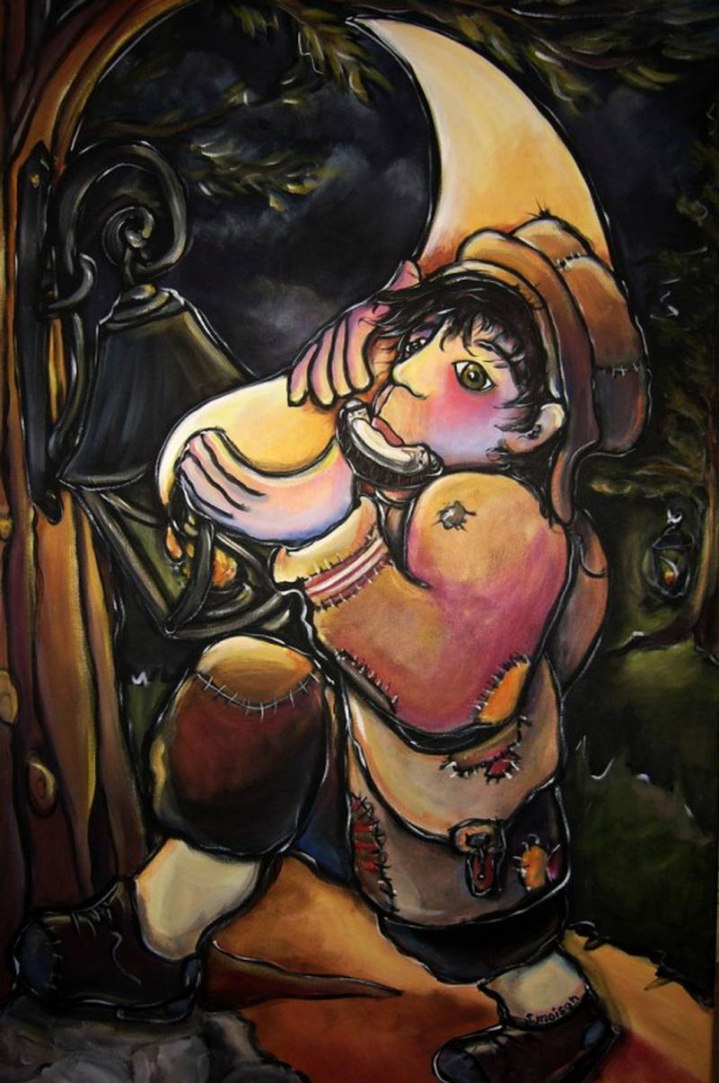 «Sophie n'a pas regardé le film «Babine», réalisé par Luc Picard dès sa sortie, ce n'était pas par manque d'envie, elle a pourtant pris son mal en patience, elle voulait mettre la touche finale à son dernier tableau avant de regarder le film. Sophie Moisan a relevé un grand défi en peinture et son interprétation des personnages et des contes et légendes de Fred Pellerin vaut le déplacement. Le «vernissement» a eu lieu et les tableaux habitent le presbytère de Saint-Élie, juste à côté du cimetière, pour la saison estivale, jusqu'en octobre.