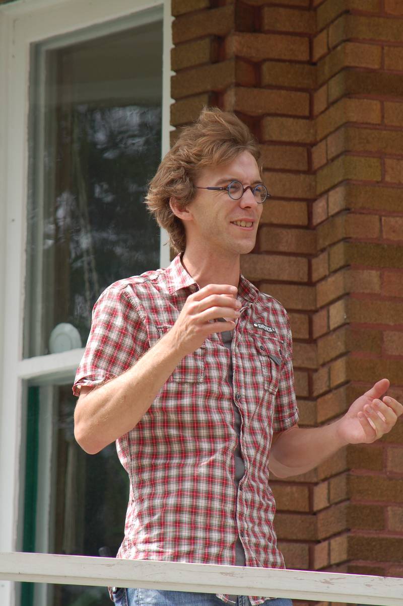 «J'pensais jamais qu'on aurait quelqu'un comme d'même à Saint-Élie un jour...sur le perron du presbytère quelqu'un de l'Académie Internationale des Beaux-Arts du Québec. Faut dire que tout ça... ça part au début du jasage ça caille à chauffage au garage chez Léo ou d'un stallage au bureau dMonsieur Louis Bruens présente Sophie Moisane poste, c'est comme ça qu'avec les placotages,  y' a des légendes qui se construisent dans l'village, puis qu'aujourd'hui y'a l'Académie... Je vous présente Louis Bruens. Y' arrive presque pour nous de Belgique.» (rires)
