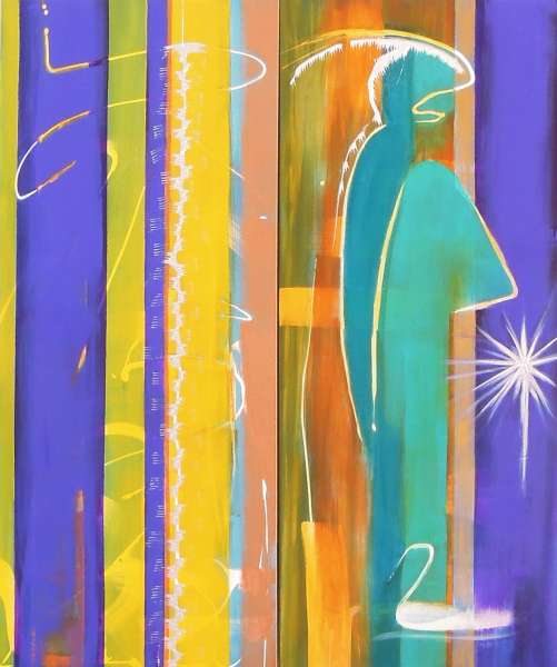 L'oeuvre de l'artiste est la manifestation de son cheminement de vie.  Plus je pousse la recherche, plus je m'engage sur la voie spirituelle.  Apparaissent alors mes anges qui se veulent un miroir du Divin que chacun porte en soi.  Les anges prennent la forme d'un ami, d'un parent, d'une personne âgée ou encore d'une arabesque lumineuse.