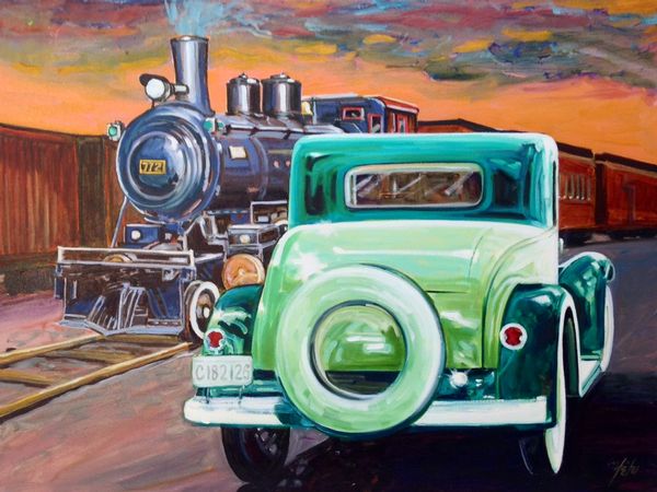 Guy TetuBiographie : «Il exerce son premier travail avec Bruno Côté chez COTE ENSEIGNES, où il reproduit d’immenses dessins et photos sur les murs extérieurs et panneaux réclames, de là son talent pour peindre de grands tableaux. Il suit des cours de peinture à l’huile donnés par LOUISE GAGNON à Ste-Foy et des cours d’aquarelles de JIMMY HALPENS, et des cours de dessins à l’Université Laval.