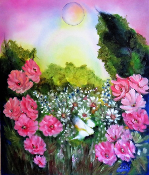 Diane TurmelBiographie : «Beauceronne de naissance née le 15 mai 1948, elle habite à Vallée-Jonction. Aux confins des balbutiements de son jeune âge, le goût et l'amour pour l'art nourrissaient ses rêves brodés de désirs à scruter un jour, le monde fascinant de l'art. C'est devant cette réalité profonde aux bruissements poétiques que Diane Turmel semble désormais pouvoir combler le sacré limpide de ses expressions. Après ses cours classiques, elle est diplômée d'une école de haute coiffure. Elle y travaillera seize ans comme styliste créant la beauté autour d'elle participant à de nombreux galas. Elle entreprend des études d'art plastique dans la région de Chaudière Appalaches. Elle fréquente également les ateliers de plusieurs artistes québécois. Elle suit également des cours d'histoire et critique d'art à l'académie «Arts & Beaux Arts Varennes» par l'historien et critique d'art, monsieur Sam Aberg. Long trajet à étudier les maîtres qui ont transcendé l'histoire de l'art. Déterminée à voir son langage pictural, elle s'attarde à développer ses propres techniques à son atelier en utilisant comme outil, des tissus de papier pour peindre. Manipulant l'huile comme médium préféré, elle débute son oeuvre pour faire éclater la lumière. Épurant son oeuvre, elle nous entraîne dans une profondeur faisant virevolter des oiseaux stylisés pour mieux nous faire comprendre un perpétuel mouvement de l'absolu. Son travail et sa qualité picturale, voilà la principale préoccupation de son oeuvre.