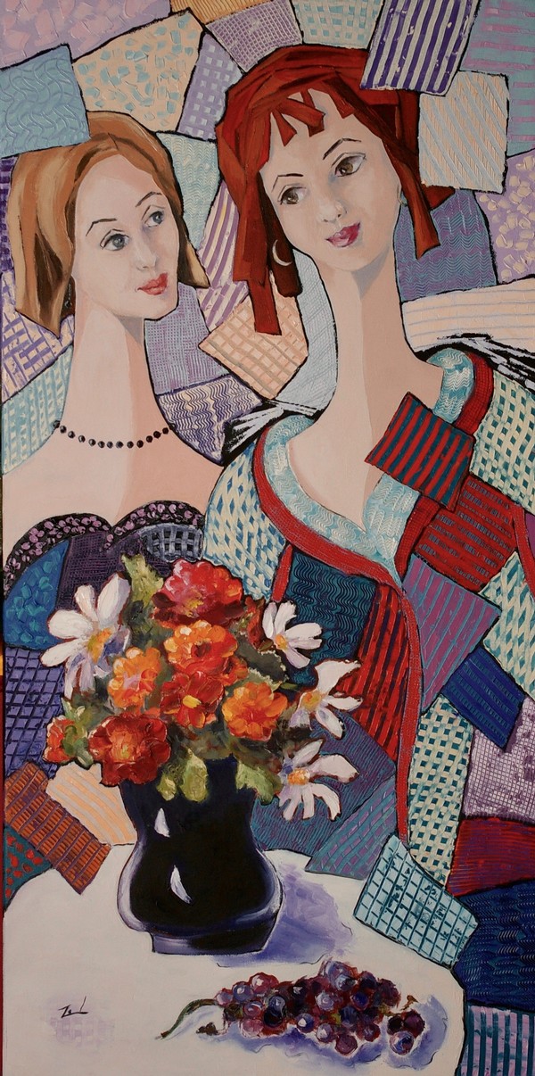 Pourquoi des personnages féminins?  Tout simplement par que je connais mieux la morphologie féminine et que leur stylisation contribue pour moi à créer une touche poétique à mes toiles.»