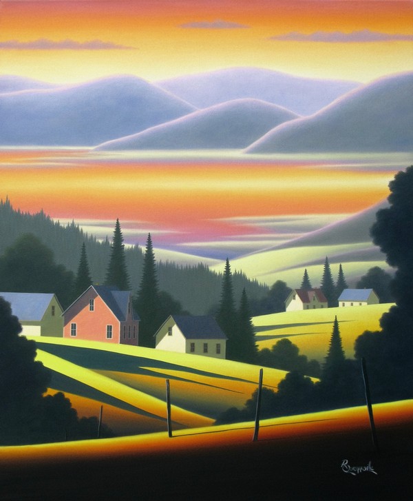 Depuis 1992, je mène une carrière de peintre professionnel. Je tente, par la réalisation de représentations figuratives de paysages, d’exprimer une certaine sérénité, un certain équilibre. Je recherche des ambiances paisibles et des jeux de lumière qui amèneront l’observateur dans un univers abordable, presque naïf, et lui procureront, je l’espère un certain bien-être. La notion de créer une ambiance positive par mon art est primordiale dans toute ma démarche.