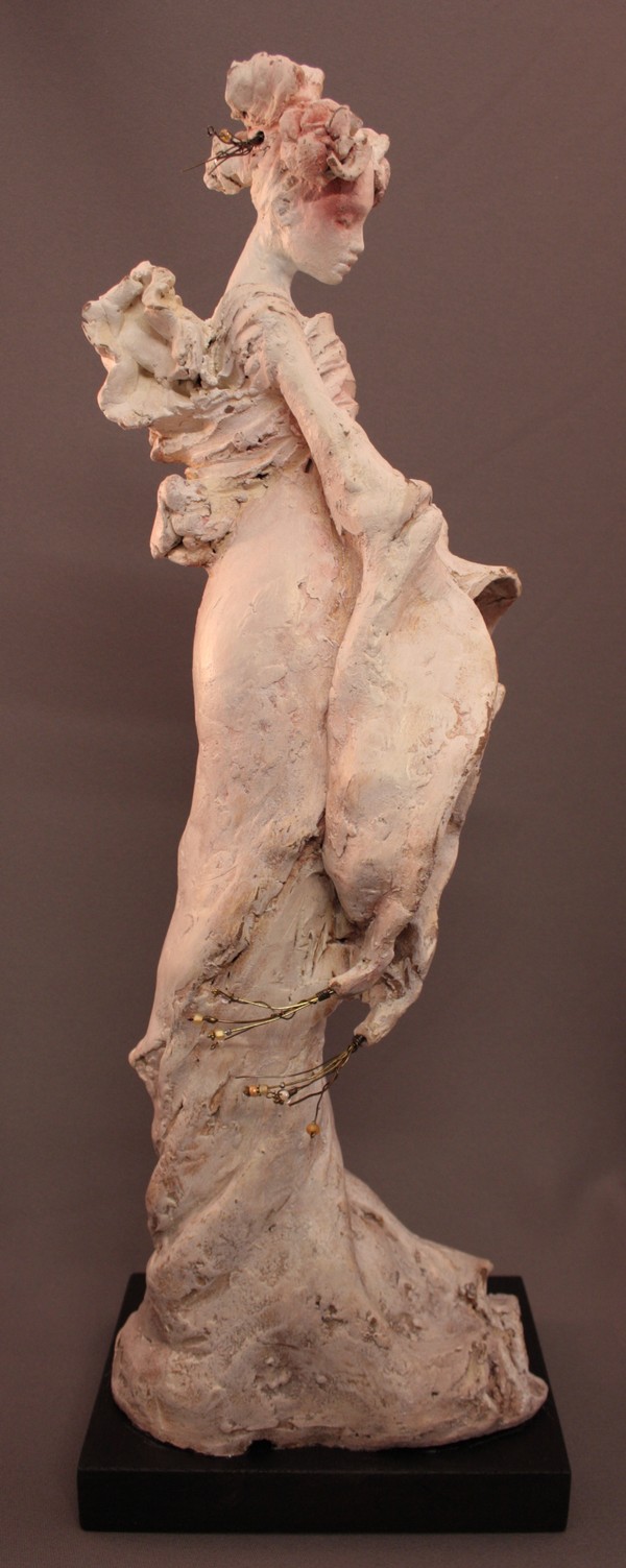 Ses réalisations se composent de personnages de femmes rendues dans un style figuratif tout en finesse et mouvement. Ses œuvres en bronze encensent la beauté, la force et la délicatesse féminine tout en l’harmonisant à un contexte folklorique ou mythique.