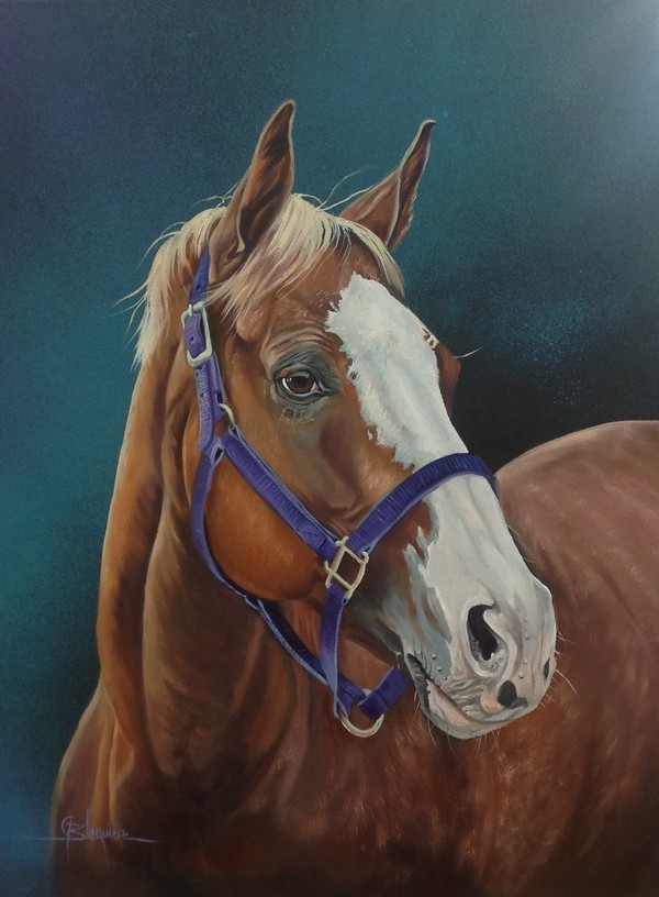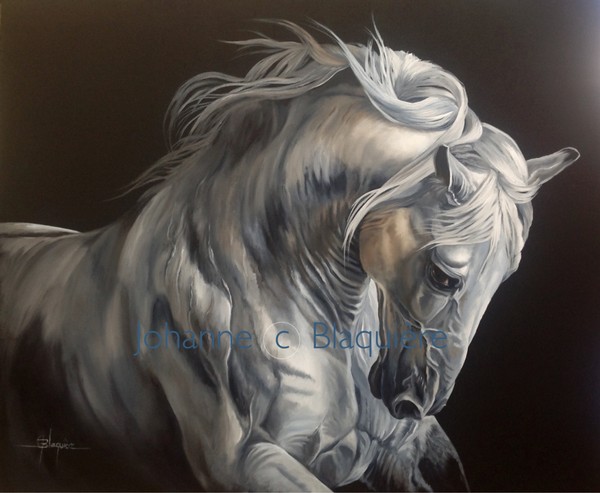 Johanne Blaquière Académicienne AIBAQMes chevaux sont représentés de différente façon, que ce soit en transparence pour donner un effet de fondu avec l’arrière-plan ou, plus réaliste dans la tradition de l’art figuratif.  Dans ces deux formes de composition un élément reste immuable, dans l’observation, le spectateur ressent l’âme de chaque cheval que je peins sur mes toiles.