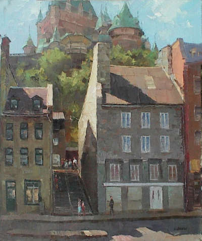 Umberto Bruni Gouverneur AIBAQUmberto Bruni est né à Montréal. C'est à l'âge de 13 ans qu'il apprend du professeur Guido Nincheri la décoration en travaillant des murales et des vitraux. Durant huit ans, de 1930 à 1938, il poursuivra des études à l'École des Beaux-Arts de Montréal. En 1939, on le retrouve en qualité de professeur à l'Académie Querbes d'Outremont et ensuite à l'École des Beaux-Arts de Montréal, de 1947 à 1969. Il sera directeur de la galerie UQAM eb 1972 où il enseignera aussi d'ailleurs. Il est fascinant et impressionnant de voir, 35 ans plus tard, le maître face à sa toile avec assurance.
