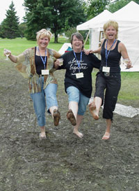 On ne s'ennuie pas au Symposium l'Art en Fête 2008 comme en témoignent la photo-souvenir de Diane Forest, Diane Goyette et Martine Larochelle toutes membres de l'Académie et participantes à l'Art en Fête 2008.