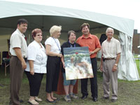 Vous pouvez voir sur la photo de gauche (De gauche à droite, Monsieur Jacques E. Poitras, conseiller à St-Hubert depuis 1996, Madame Josée Chevrier, présidente du CAPSH, Madame Lise Dutil, conseillère du District, l'artiste-peintre, récipiendaire du Premier Prix du Symposium Madame Diane Forest, Monsieur Stéphane Desjardins, président de l'arrondissement St-Hubert, conseiller municipal de la Ville de Longueuil depuis 2001 et Monsieur Roger Roy, conseiller municipal depuis 1972 et représentant de Monsieur le Maire Claude Gladu, actuellement en vacances.)