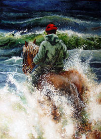 La Ville de Longueuil a acquis le tableau gagnant, une oeuvre splendide de Diane Forest, réalisée cette fois à l'acrylique, «Les ramasseurs de mousse d'Irlande, La traversée». (Photo de droite)