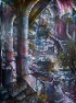 J’accumule. Je collectionne. Je constate. Je mémorise. Pour cela, empruntant aux vitraux sacrés, le statisme de la figuration, de même que la sobriété classique de la couleur sobre et riche issue d’un passé connu, je provoque la curiosité piquée du spectateur utilisant le mode méditatif afin de fouiller l’apparente réalité de lieux imaginaires apparemment fictifs. J’y mêle le calme rassurant d’une visite muséale juxtaposé à une surexcitation visuelle suscitée par l’abondance d’éléments en constant mouvement. Du doute inquiétant, référence à Edward Hopper, Magritte, David Lynch et Alfred Hitchcock, je conserve l’attrait séduisant du mystère dans son fantastique.